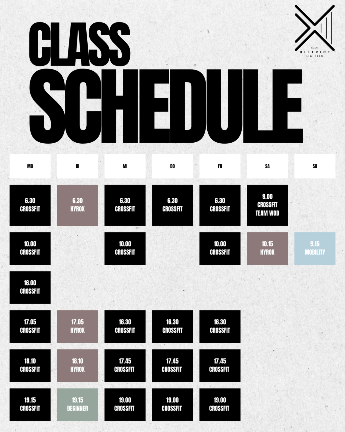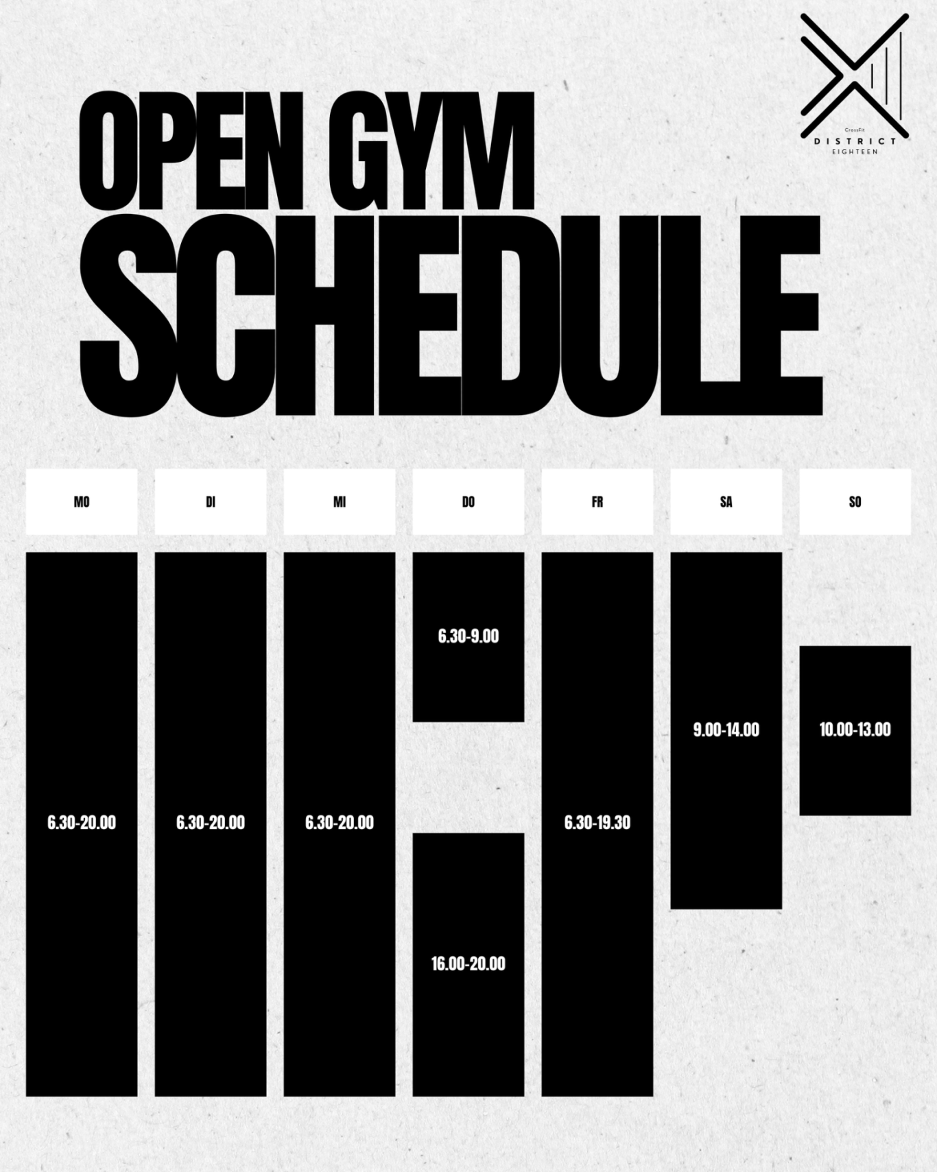 In unserem Open Gym Bereich trainierst du unabhängig und flexibel – genau nach deinem eigenen Plan. Egal ob CrossFit oder HYROX: Dir steht ein großzügiger Trainingsbereich zur Verfügung, ausgestattet mit allem, was du brauchst – von Langhanteln, Rigs, Rower und Skiergs bis hin zu Sled Pull & Sled Push. Ideal für erfahrene Athleten, die frei und effektiv trainieren wollen – ganz ohne Kursbindung, aber mit maximaler Trainingsqualität.